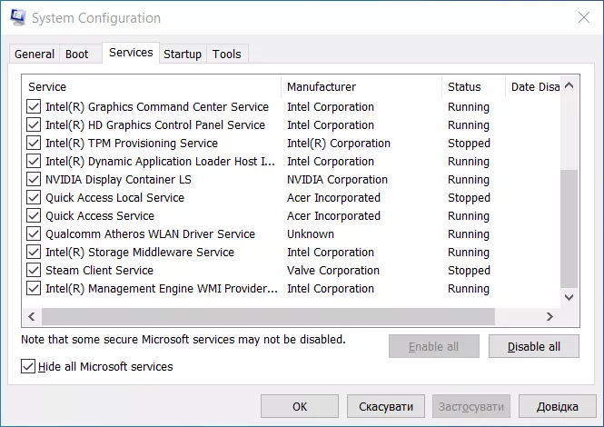 Здесь тоже не следует отключать пункты, производителем которых является Microsoft. Отключение программ других производителей может привести к неправильной работе устройств в том случае, если вы отключите их драйверы. Поэтому программы производителей вашего аппаратного обеспечения (например, Intel) лучше не отключать, либо отключать в самую последнюю очередь.